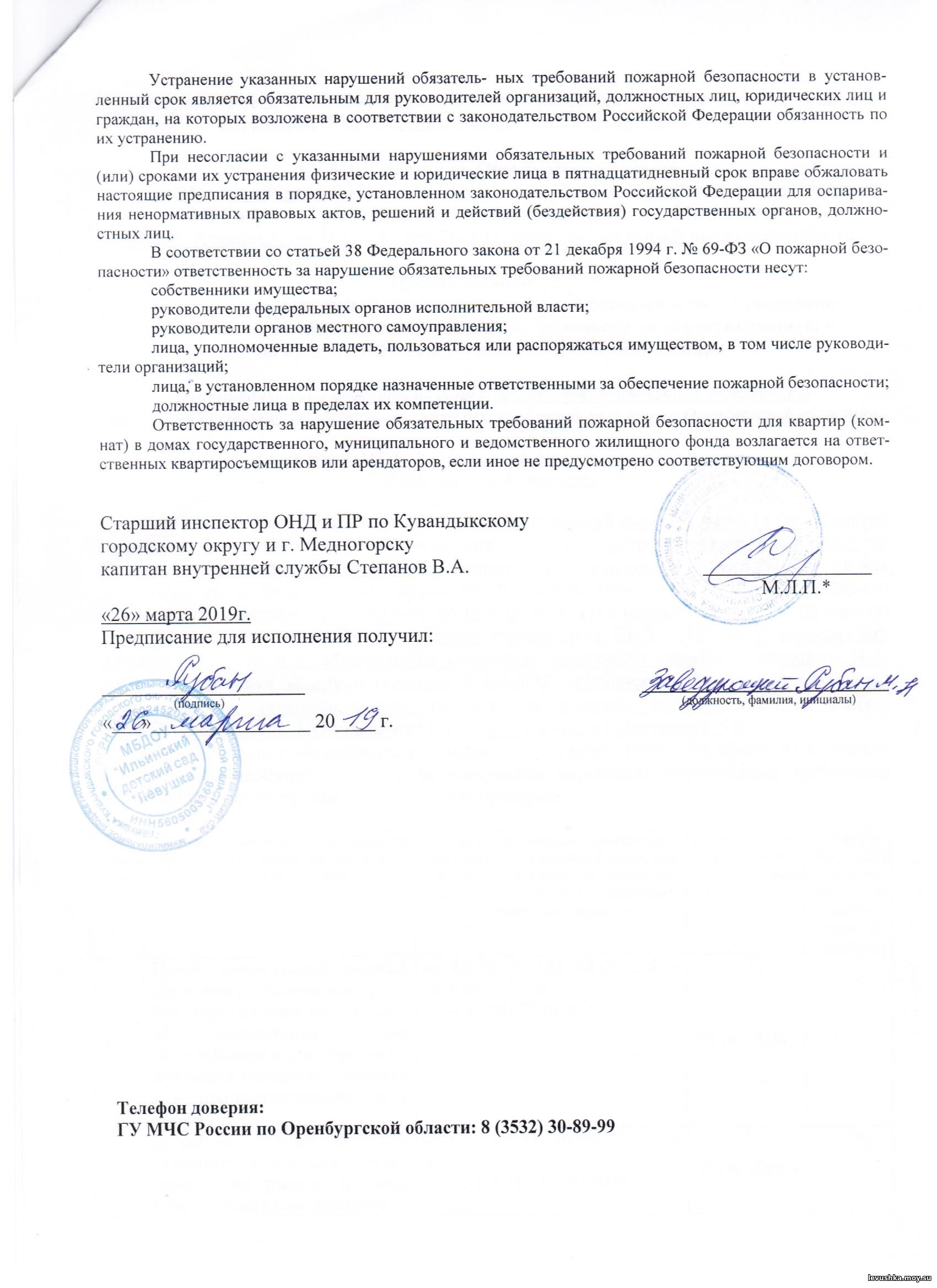 Отчёты об исполнении предписаний органов, осуществляющих контроль (надзор) »